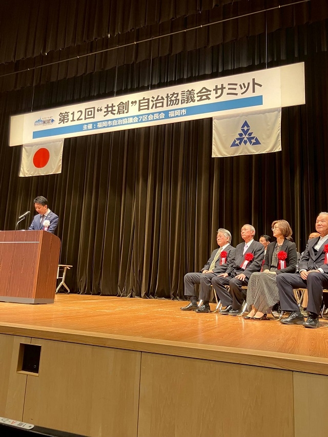 福岡市長のご挨拶に始まり、「自治貢献者・地域貢献企業感謝状贈呈式」
