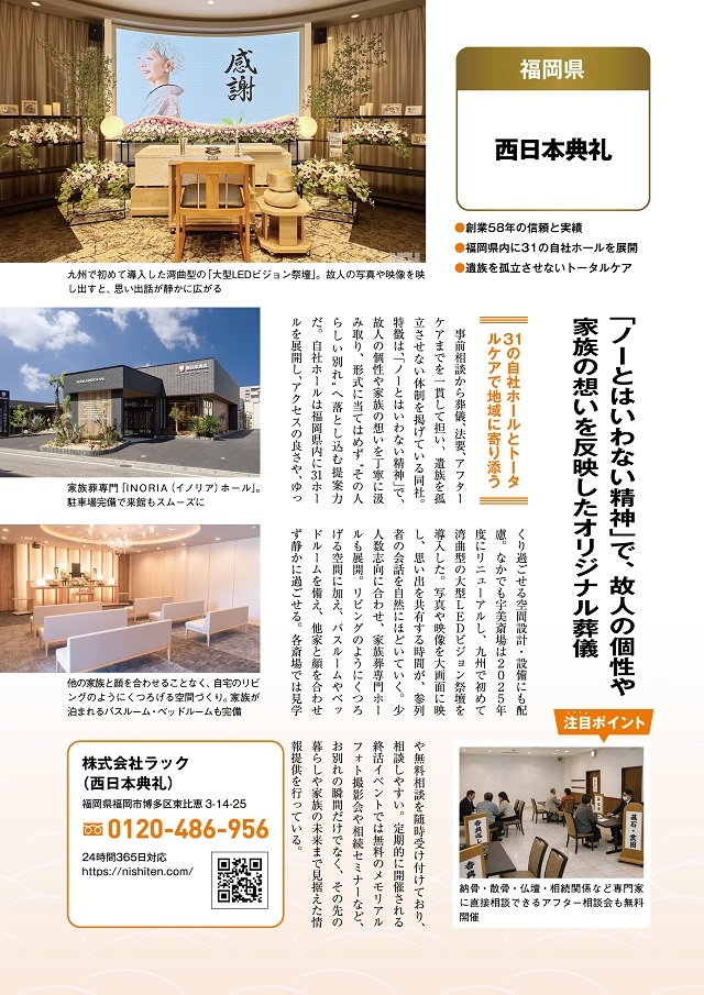 今回の掲載を励みに、西日本典礼はこれからも福岡の地域に根ざした葬儀社として、皆さまに寄り添ったサービスを提供してまいります。