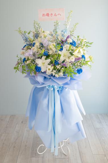 洋花のアレンジにフリルが映えるデザインのスタンドです。