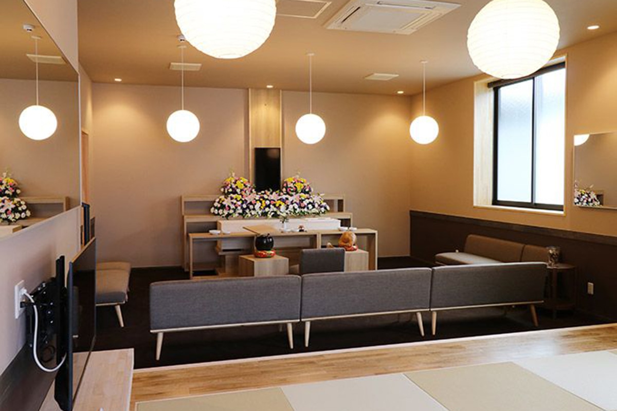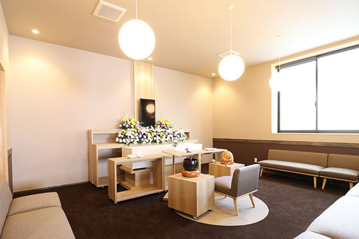 福岡一日葬ホールでは、身近な方でゆっくりとお別れが出来る空間を提供したいと考え、少人数でのご葬儀にご利用頂けるホールになっております。